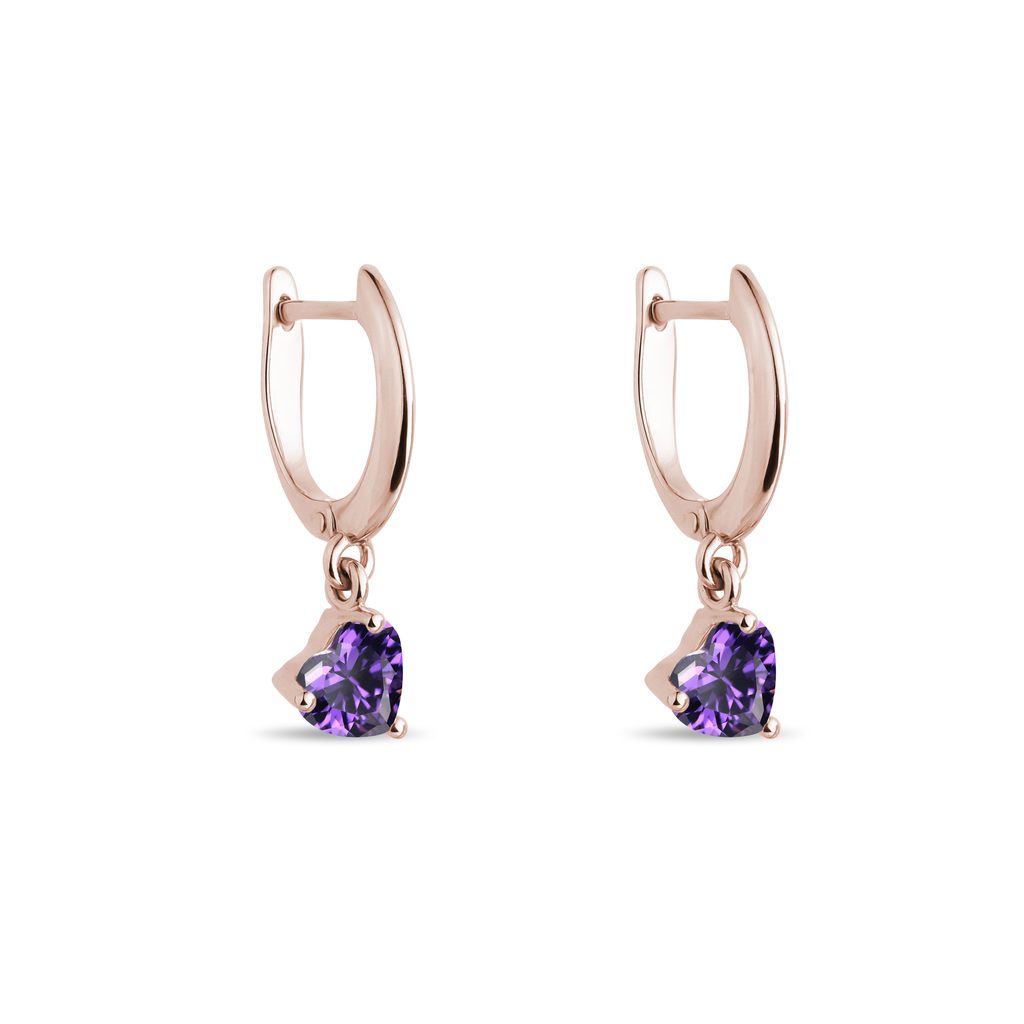 Náušnice s ametysty ve tvaru srdce v růžovém zlatě