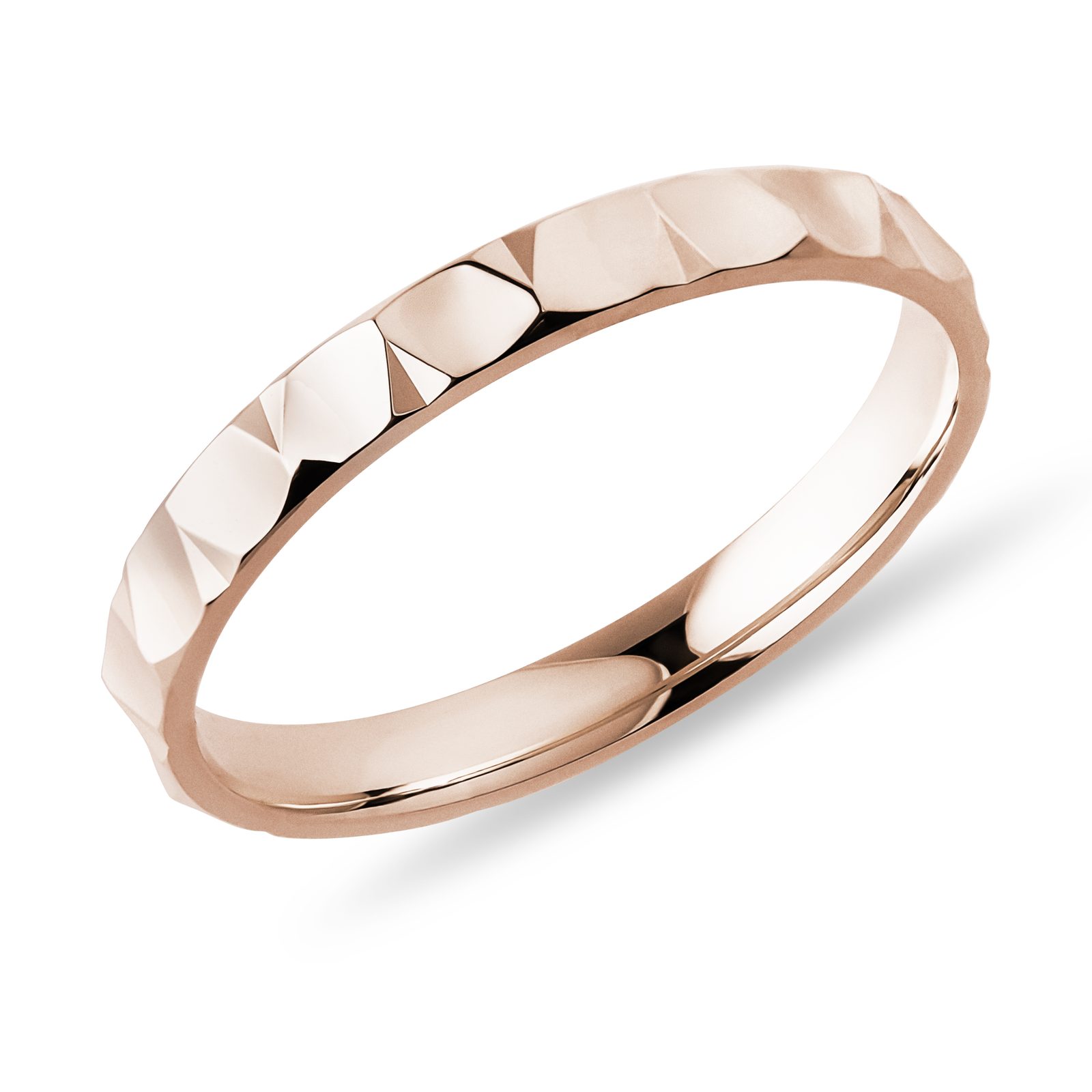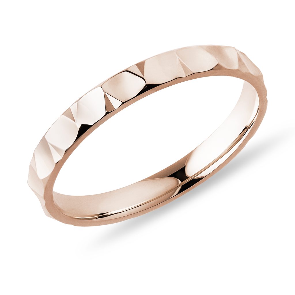 Pánský prsten s broušenými fasetami v růžovém zlatě