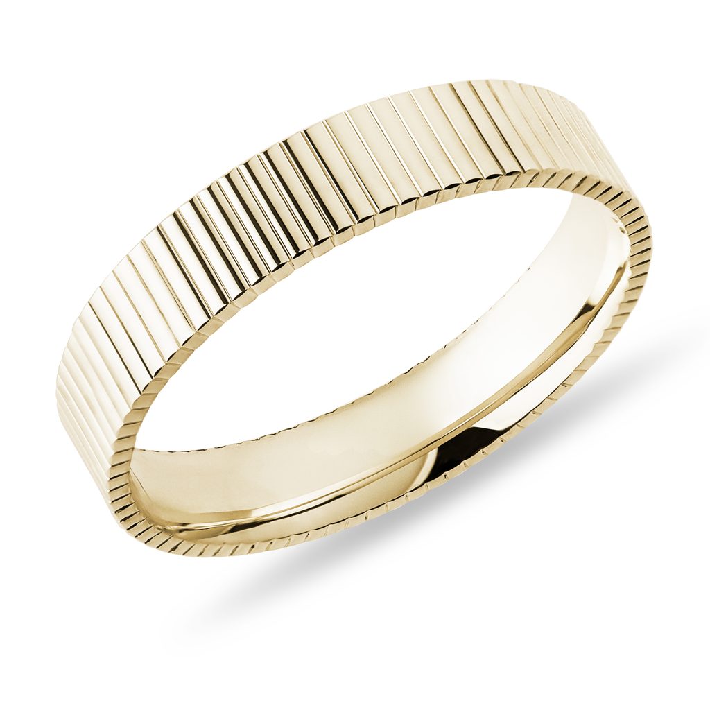 Pánský prsten s liniovým gravírováním ve žlutém zlatě