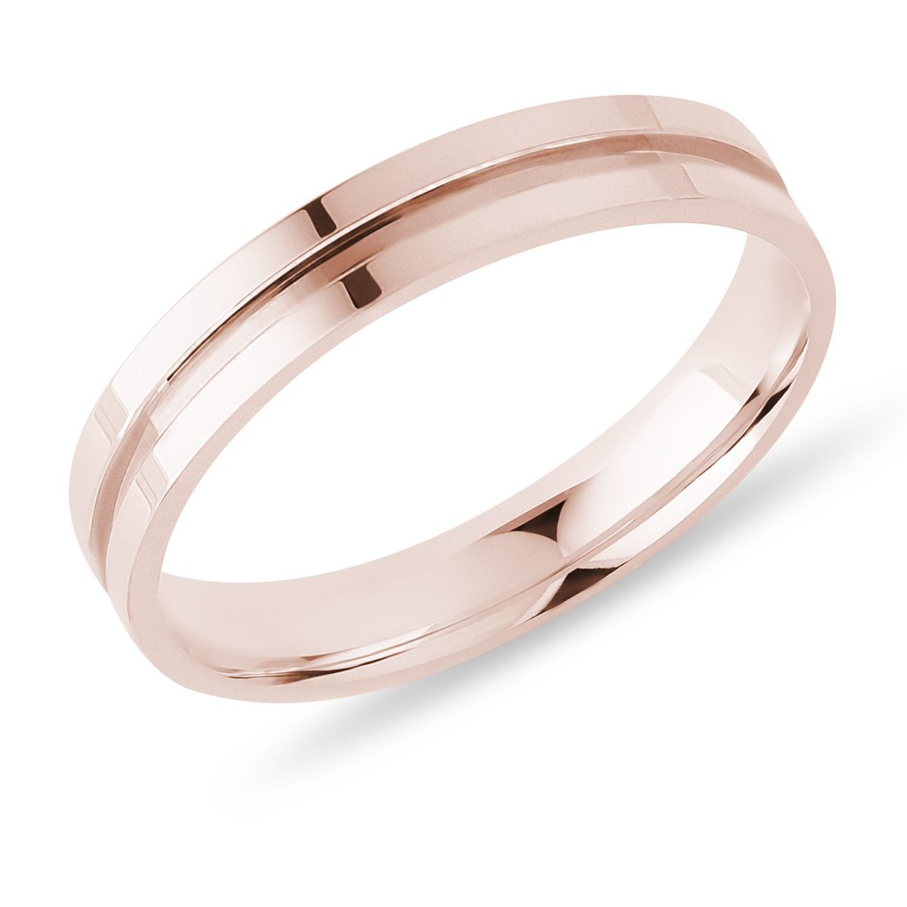 Pánský prsten s rytou drážkou v růžovém zlatě