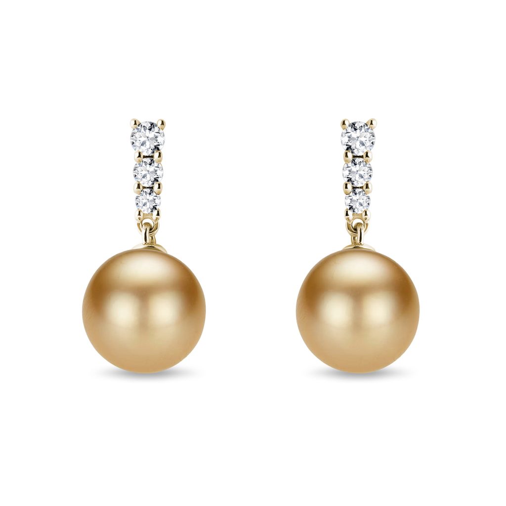 Zlaté visací náušnice s perlou jižního Pacifiku a diamanty