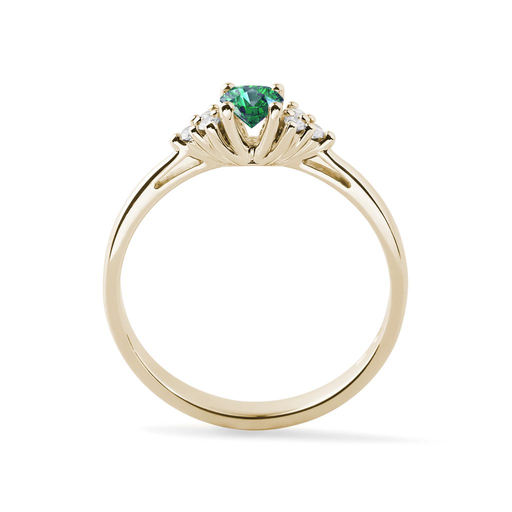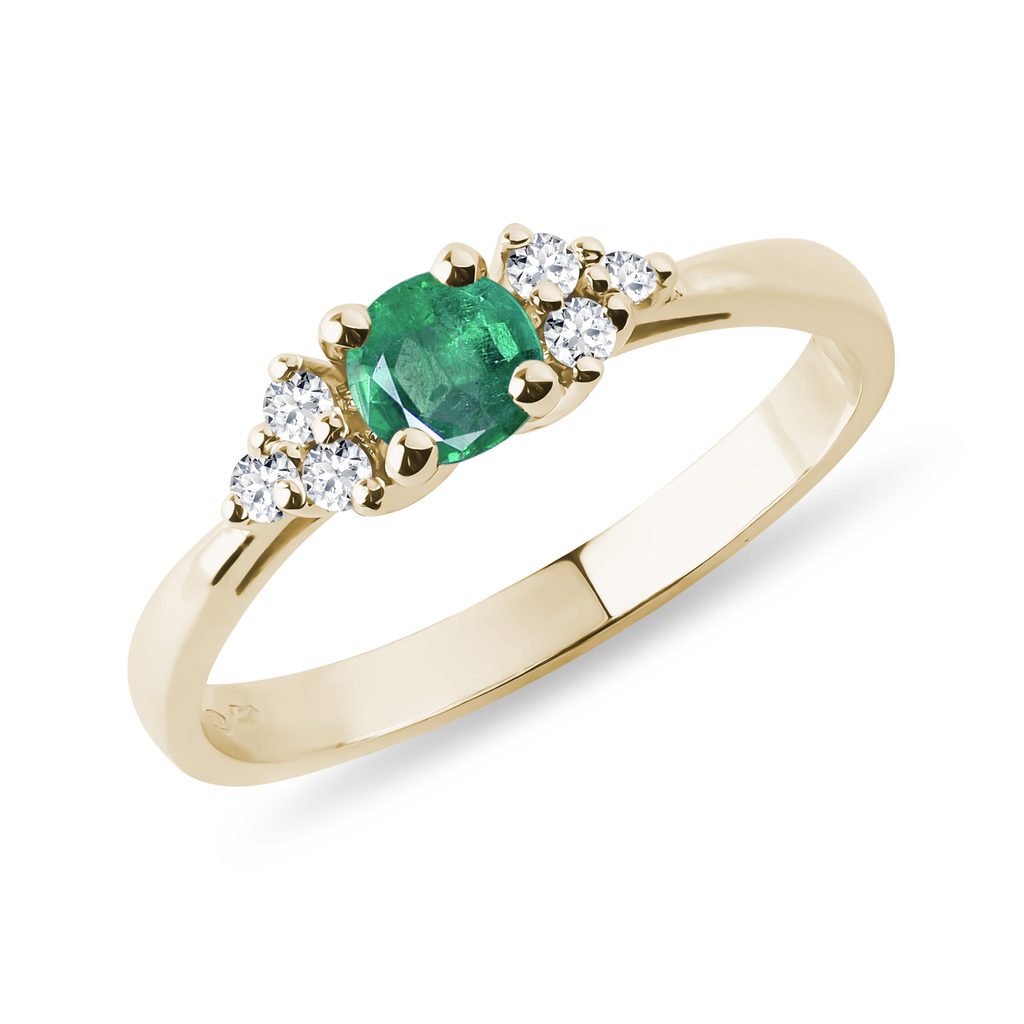 Prsten ze žlutého 14k zlata se smaragdem a diamanty