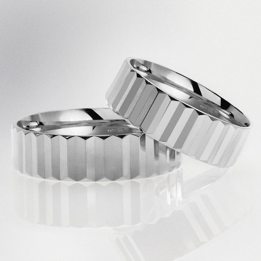 Stylový dámský prsten z bílého 14karátového zlata o šířce 6 mm s jemným plisé detailem, který v kombinaci s lesklým povrchem působí elegantně a nadčasově. Prsten vynikne samostatně, ale lze jej snadno kombinovat i s dalšími šperky. Díky svému univerzálnímu provedení je vhodný také jako snubní prsten pro ženy, které hledají výraznější, ale stále nadčasový styl.