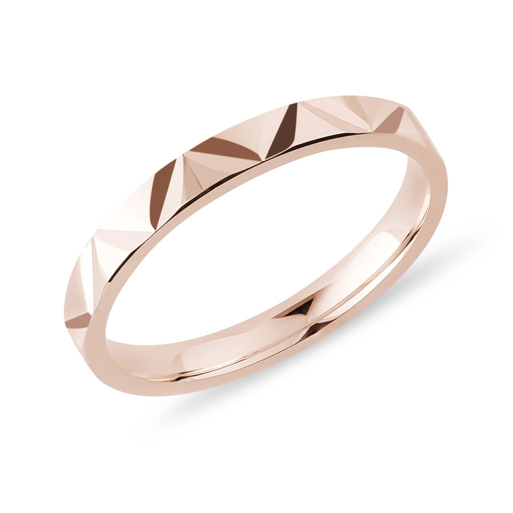 Prsten se strukturovaným povrchem v růžovém zlatě