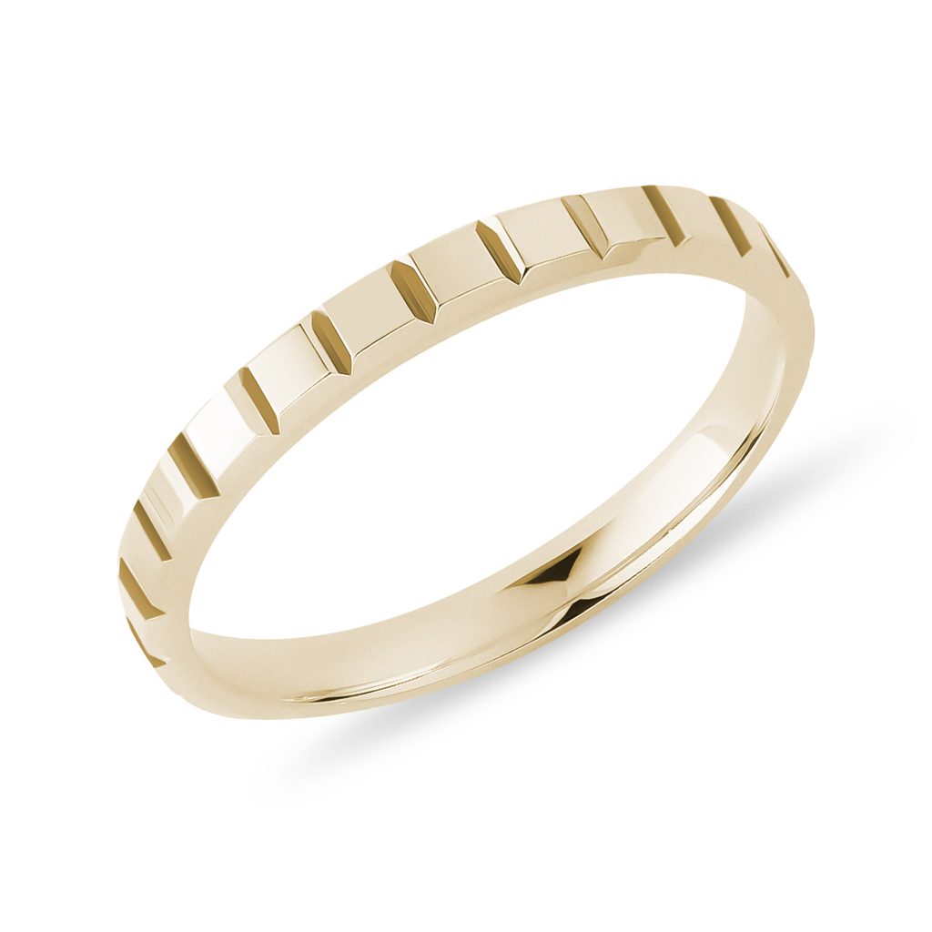 Dámský prstýnek ze žlutého 14karátového zlata zdobí jemný detail vytvořený metodou precizního strojového gravírování. Díky jednoduchému provedení a šířce 2,5 mm se skvěle kombinuje a je jako stvořený pro vrstvení, které si můžete jednoduše přizpůsobit náladě i svému stylu.